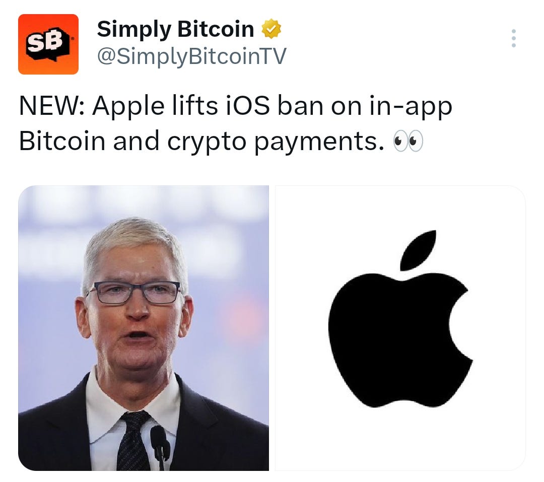 🗞️ Apple Eases Crypto Rules • Block's Open-Source Bitcoin Mining Chip • Arizona Governor Vetoes Bitcoin Bill • Wallet Of Satoshi's New Chad Mode + All The Latest Bitcoin News!