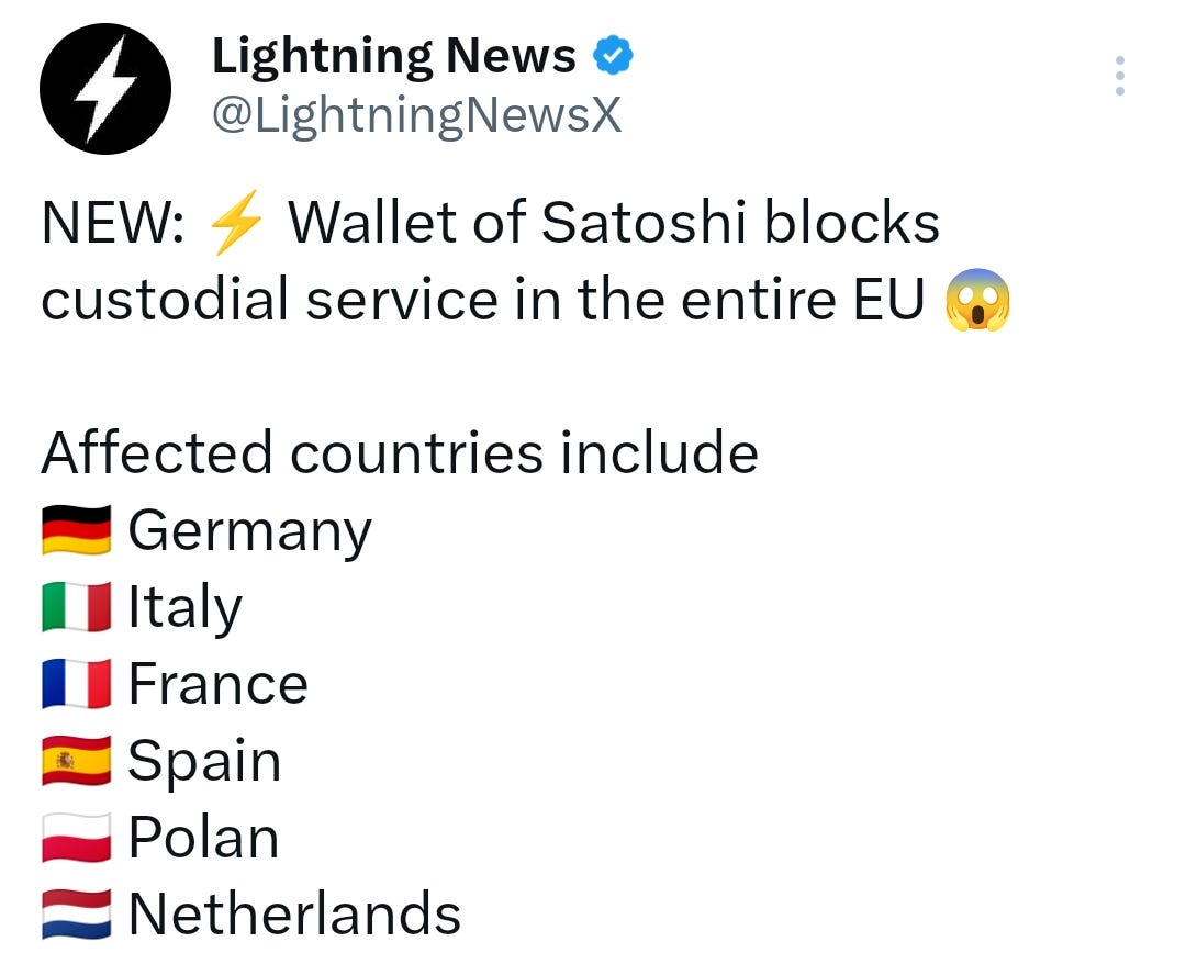 Wallet of Satoshi’s Custodial Wallet Blocked in the EU…