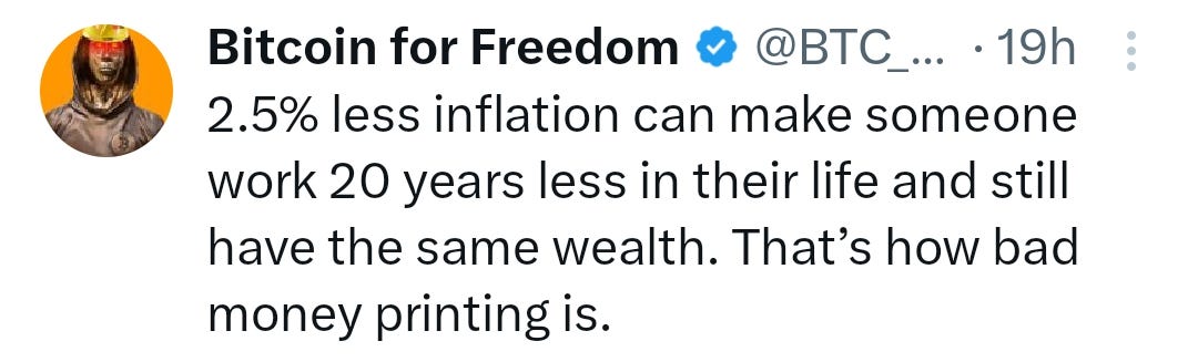 We are interested in low time preference thinking and how FreedomTech (Bitcoin, Nostr, encryption, the internet etc) can help build a better and freer future. Like Bitcoin, this newsletter is politically non-partisan; Bitcoin is for everyone! The content we share, including videos, memes & social media accounts, does not necessarily reflect the views of this newsletter.