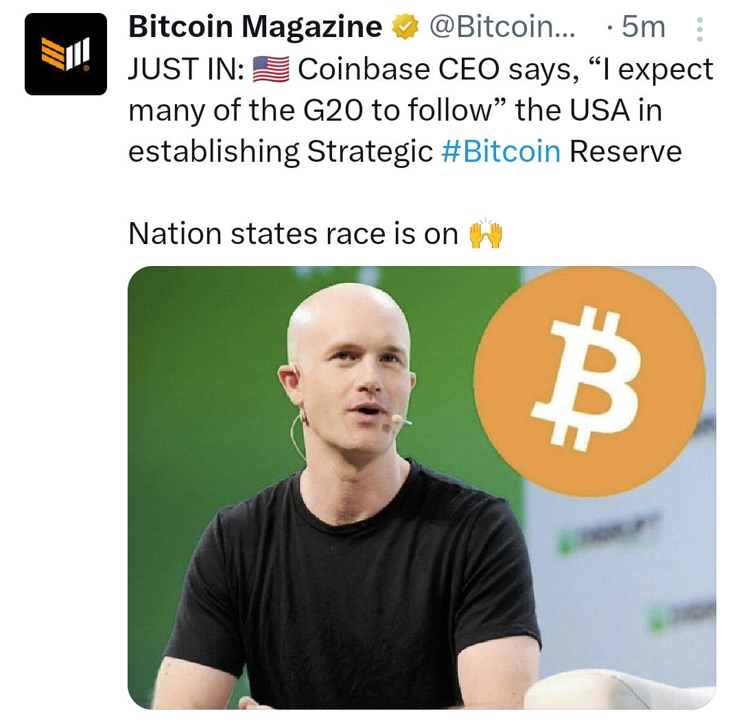 Crypto Casino (Coinbase) CEO Expects G20 Nations To Follow America’s Strategic Bitcoin Reserve…